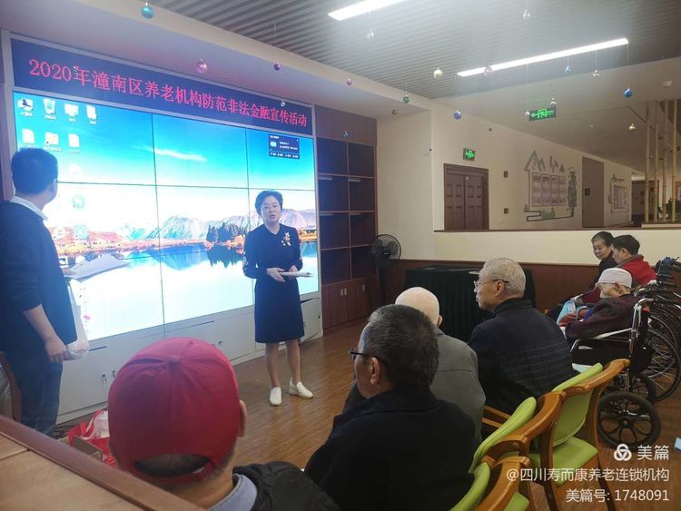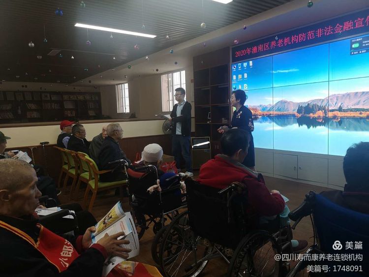 隨著(zhù)全社會(huì )網(wǎng)絡(luò )越來(lái)越發(fā)達,為了防止一些不法分子,利用老年人這方面知識的欠缺,以及老年人對事物的分析判斷力的減弱實(shí)施詐騙。重慶市潼南區壽而康桂林社區服務(wù)中心,于9月22日,舉辦了“養老機構防范非法金融宣傳”活動(dòng),特邀請潼南區國資委的老師們主講,全院老人和員工參加,充分體現了:替子女盡孝,幫家庭分憂(yōu),為社會(huì )擔責的企業(yè)擔當。