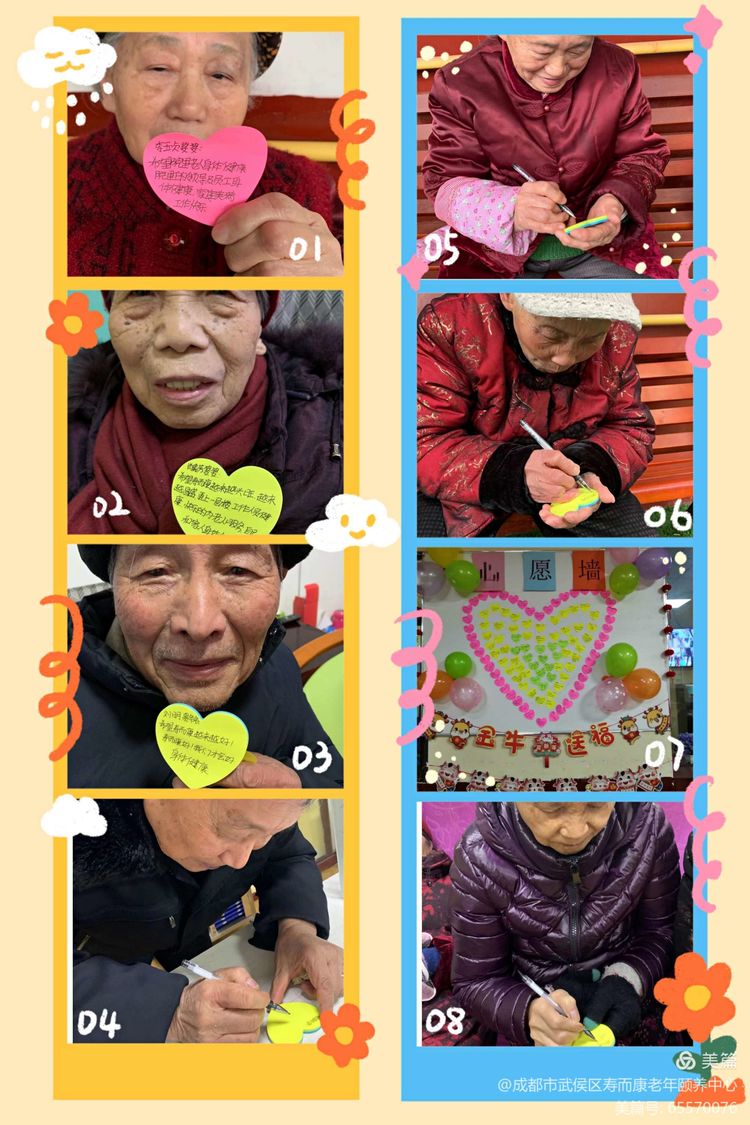 讓老人們寫(xiě)新年愿望,粘貼上墻