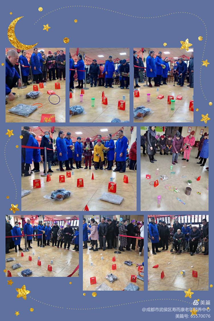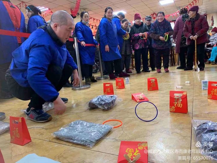 2020年12月30日下午,武侯區壽而康老年頤養中心里熱風(fēng)拂面溫暖如春,老人們面帶紅光語(yǔ)帶喜氣,在各處排隊踴躍參加各種活動(dòng),熙來(lái)攘往情緒高漲,整個(gè)活動(dòng)場(chǎng)地一片歡聲笑語(yǔ),歡呼喝彩聲此起彼伏……原來(lái),是老人們在參加院里舉辦的迎新年游園活動(dòng)。