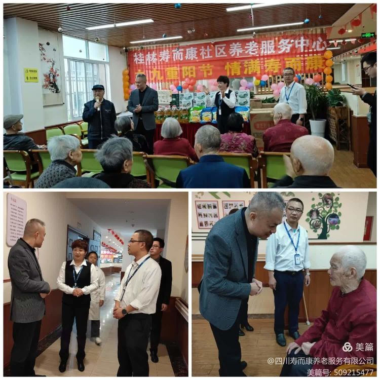 夕陽(yáng)紅光映晚霞,樂(lè )享晚年幸福家。壽而康旗下四片區各院,隆重舉辦了“九九重陽(yáng)節,情滿(mǎn)壽而康”主題慶典活動(dòng)。公司相關(guān) 受曹野董事長(cháng)委托,分赴各院慰問(wèn)老人并一起聯(lián)歡,讓老人們實(shí)實(shí)在在地感受到幸福家園的美好與溫暖。