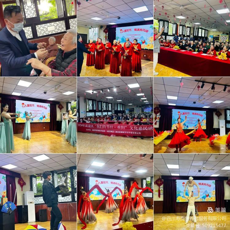 遍地菊花灑金黃,滿(mǎn)城煙火慶重陽(yáng)。秋意漸濃,重陽(yáng)節至,為響應國家“敬老月”活動(dòng)號召,進(jìn)一步弘揚中華民族孝親敬老傳統美德,壽而康旗下四片區各院,積極行動(dòng),百花齊放,舉辦了一系列豐富多彩的慶?;顒?dòng),為長(cháng)輩們的晚年生活增添了一份溫馨與喜悅。無(wú)論是與社區互動(dòng),還是節日慶典,每一幕都充滿(mǎn)了愛(ài)與歡笑。