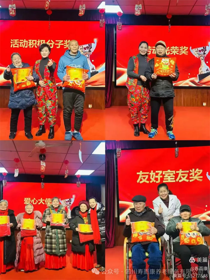 在這一刻,我們共同見(jiàn)證2024年度各院里那些閃耀的婆婆爺爺們榮獲嘉獎的榮耀時(shí)刻。愛(ài)心大使獎、活動(dòng)積極分子獎、樂(lè )于助人獎等,每一個(gè)獎項背后,都是老人們在平凡生活中的閃光點(diǎn)。他們用善良、勤勞、熱情和友善,為養老院、敬老院增添了溫暖與活力。當婆婆爺爺們接過(guò)獎狀和獎品,臉上洋溢著(zhù)幸福的笑容,那笑容,是對過(guò)去一年的滿(mǎn)意,也是對新一年的期待!