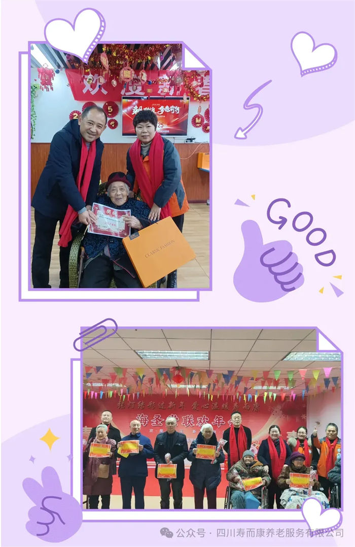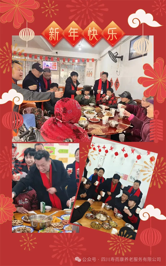 金龍辭舊歲,蛇年舞新春。在這辭舊迎新的美好時(shí)刻,壽而康旗下成都、重慶、宜賓、南充四大片區的每一個(gè)養老院、敬老院都洋溢著(zhù)濃濃的年味,仿佛整個(gè)世界都被這份喜悅所感染。而這一切,都始于公司董事長(cháng)曹野先生在年度總結會(huì )上那句溫暖而堅定的承諾:“一定要陪伴好住養在我們壽而康各養老機構的老人,千方百計讓他們度過(guò)一個(gè)祥和開(kāi)心的新春佳節?!边@句承諾,如同一盞明燈,照亮了整個(gè)蛇年新春,也溫暖了每一位老人和員工的心。公司董事會(huì )、總經(jīng)辦統一部署,精心籌劃“春節八天樂(lè )”活動(dòng),員工們積極響應,用心籌備,只為給老人難忘新春。新年鐘聲敲響,祝福彌漫空氣。養老院、敬老院內紅燈高掛,喜慶祥和,溫馨滿(mǎn)溢。此非僅春節之慶,更是溫暖陪伴之諾的兌現。