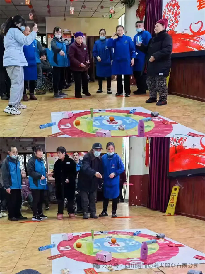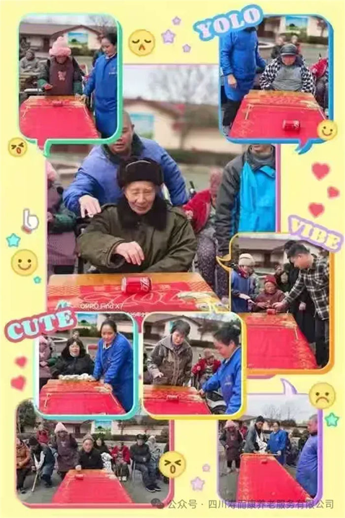 從初一到初七,甜蜜與歡樂(lè )充盈每一天。初一,熱騰騰的湯圓上桌,寓意團圓甜蜜。隨后幾日,各院的春節游園活動(dòng)精彩紛呈:蒙眼猜盲盒、唱紅歌、夾杯子、乒乓球游戲等,老人們積極參與,智慧與熱情并存,現場(chǎng)氣氛熱烈。初七,新年寄語(yǔ)活動(dòng)溫情延續,員工橫幅上滿(mǎn)載對老人的祝福與感激,滾可樂(lè )蛇年大吉游戲更添驚喜歡樂(lè ),老人們歡呼雀躍,整個(gè)春節洋溢著(zhù)溫暖與喜悅。