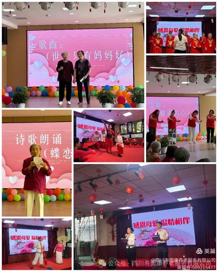 “萱草生堂階,游子行天涯。慈親倚堂門(mén),不見(jiàn)萱草花?!蹦赣H,宛如世間溫暖的港灣,母愛(ài)恰似潺潺溪流,無(wú)聲潤澤著(zhù)每個(gè)人的心田。在2025年5月10-11日這個(gè)充滿(mǎn)溫情的周末,壽而康旗下成都、重慶、宜賓、南充各大片區的養老中心,一場(chǎng)以“感恩母愛(ài),溫情相伴”為主題的母親節活動(dòng)溫馨啟幕,為老人們打造了一段難以忘懷的美好時(shí)光?