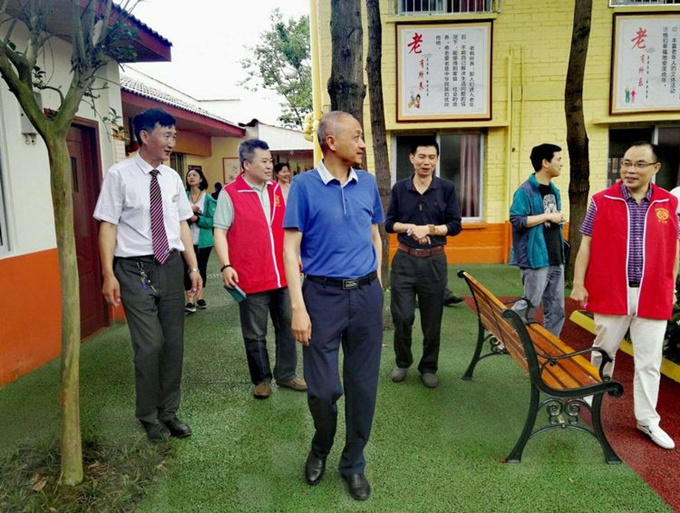圖為:壽而康養老連鎖機構董事長(cháng)曹野先生(中著(zhù)T恤者)親自陪同來(lái)院咨詢(xún)考察參觀(guān)者。