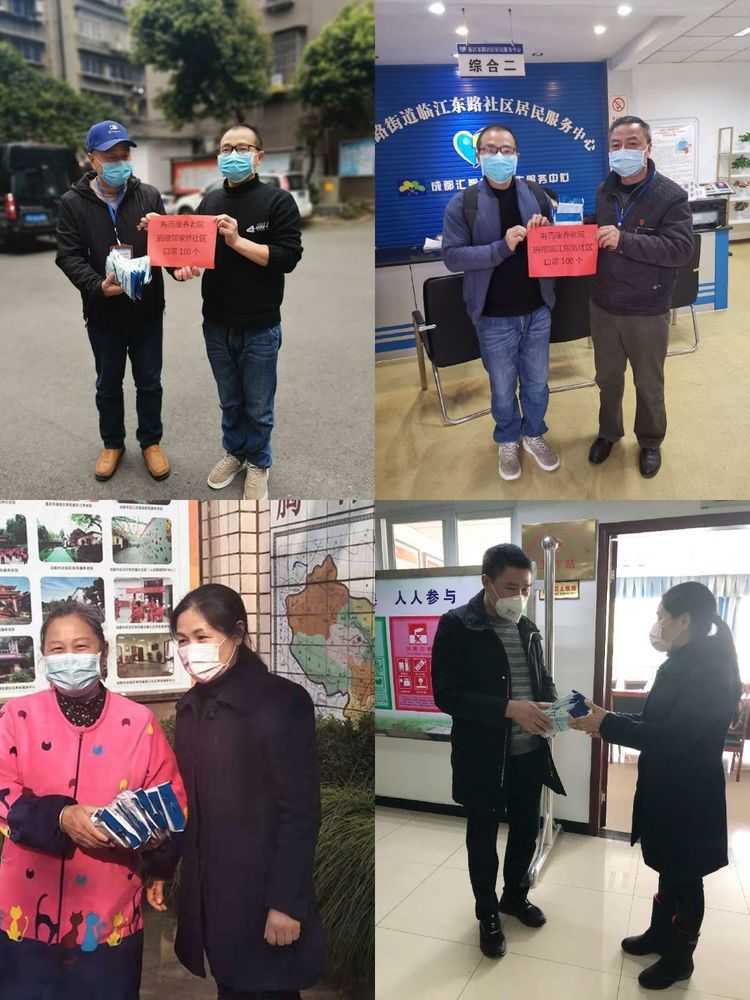 說(shuō)做就做,他四處打聽(tīng),八方尋找,終于通過(guò)四川重慶商會(huì ),從俄羅斯購到一批口罩!曹董事長(cháng)立刻安排人員利用各種渠道,把口罩送到壽而康所在的各街道、社區、村社去。在公司兩位副總的具體組織下,不到兩天時(shí)間,就將2000余個(gè)口罩免費送達到了成都市、重慶市、宜賓市等10余個(gè)街道社區和村社。