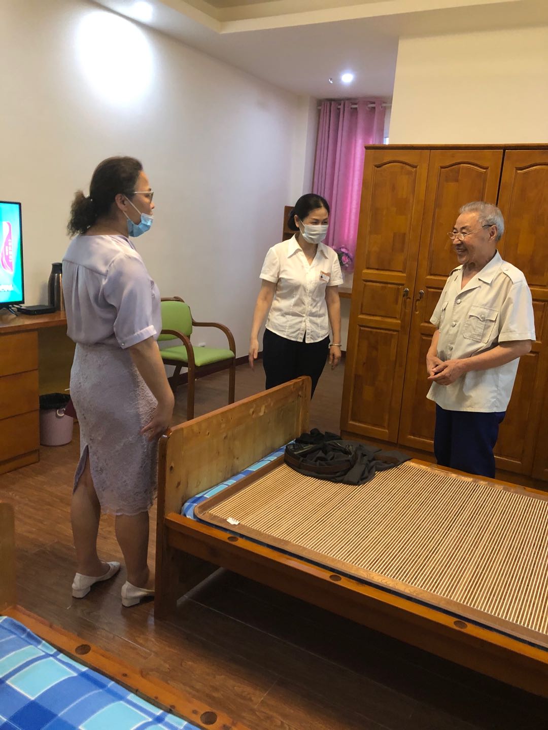 王院長(cháng)陪同領(lǐng)導們參觀(guān)了文化走廊、智慧養老平臺、多功能廳,領(lǐng)導們還興致勃勃地走進(jìn)老人房間,與住養老人聊天,老人們安心、滿(mǎn)足、歡喜的狀態(tài),讓領(lǐng)導們深受感染。