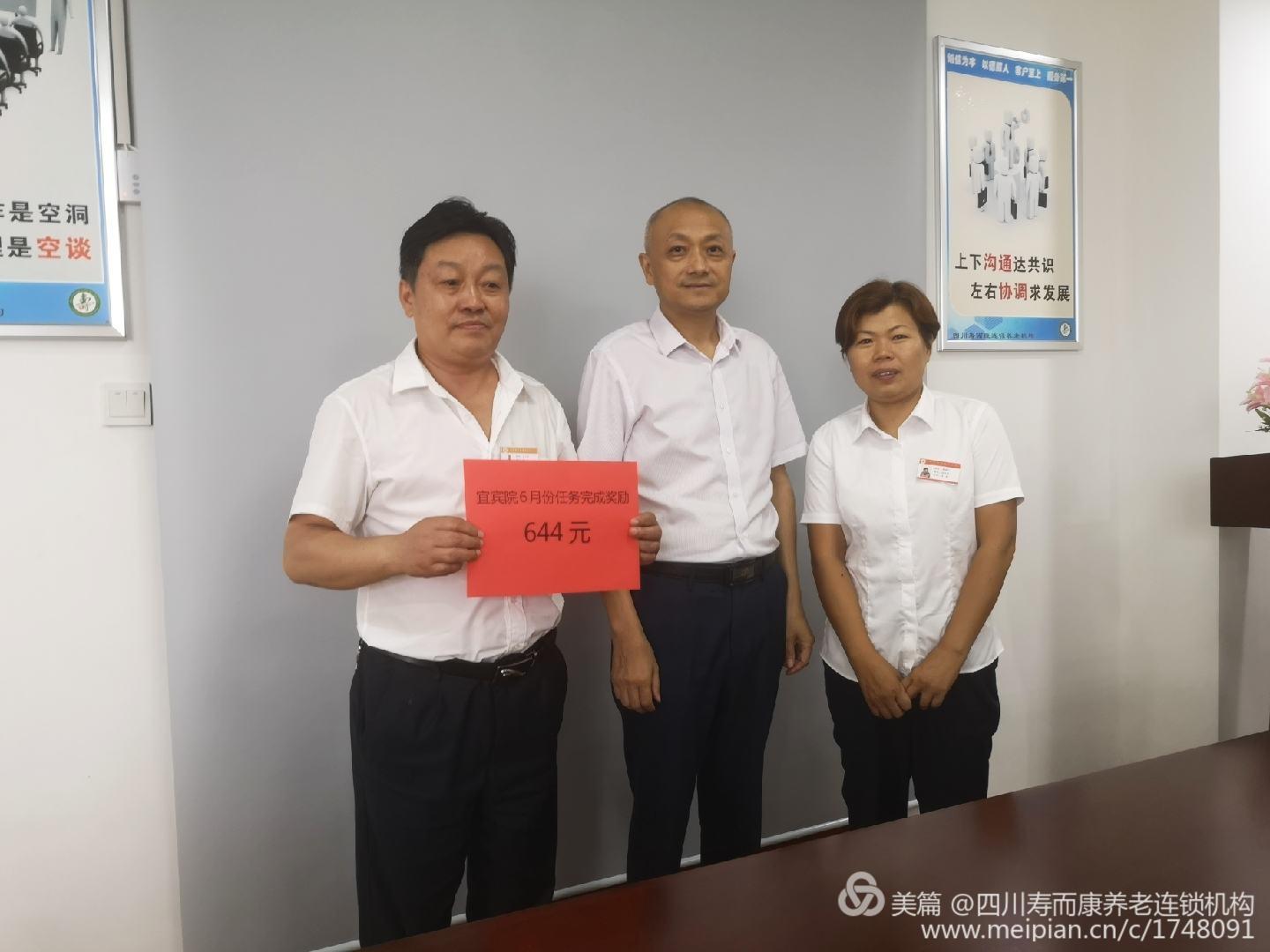 董事長(cháng)親自為6月份銷(xiāo)售冠軍團隊一一四川宜賓壽而康鳳凰湖養老院頒獎。