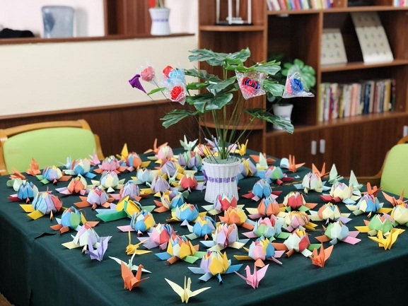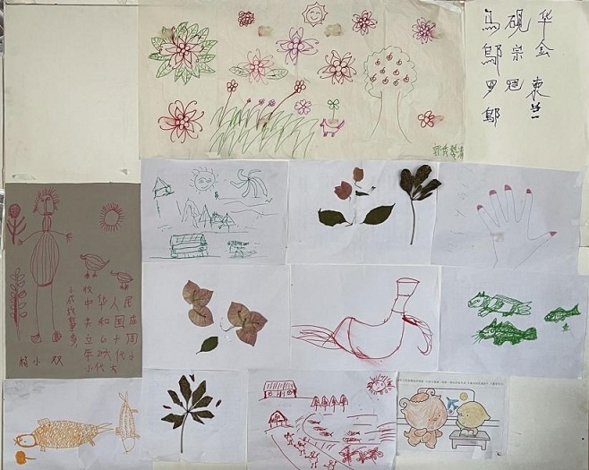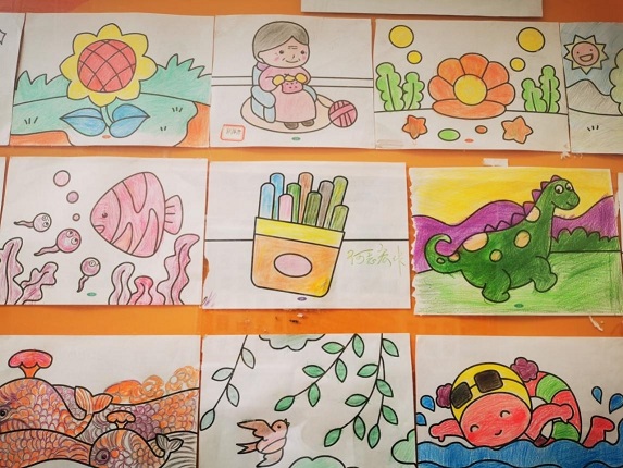 (失智老人照護區的老人手工繪畫(huà)展示墻)