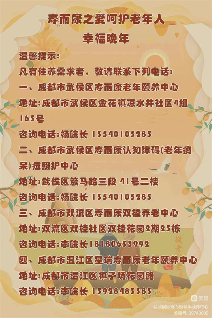 經(jīng)營(yíng)項目:成都養老院,成都養老機構,成都敬老院,歡迎前來(lái)咨詢(xún)!