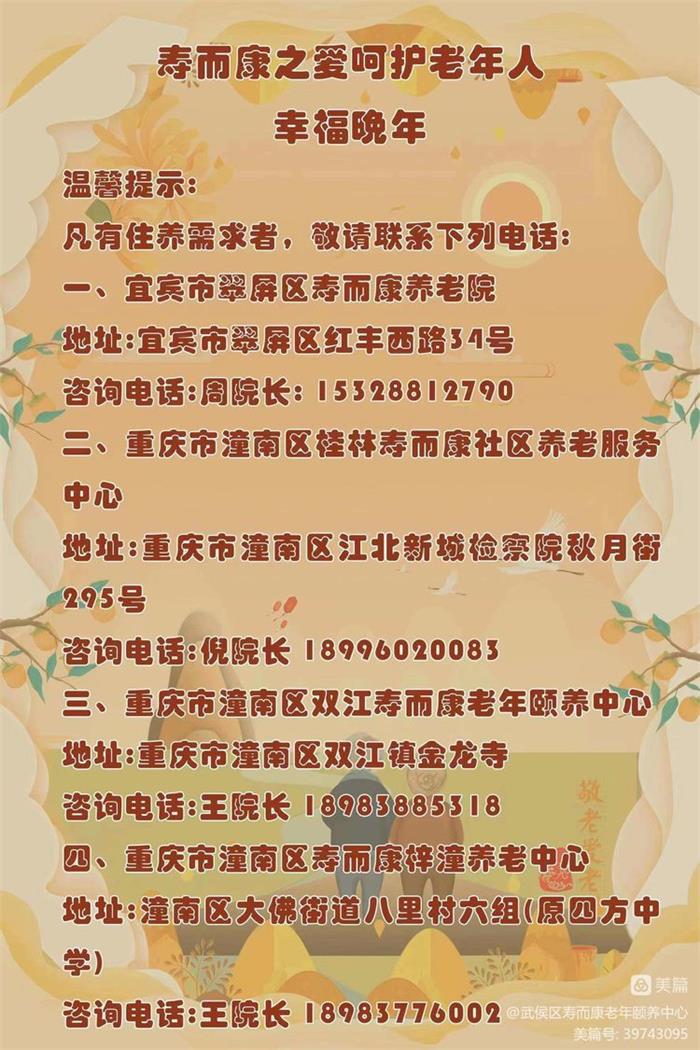 了解詳情金龍辭舊歲,蛇年舞新春。在這辭舊迎新的美好時(shí)刻,壽而康旗下成都、重慶、宜賓、南充四大片區的每一個(gè)養老院、敬老院都洋溢著(zhù)濃…
