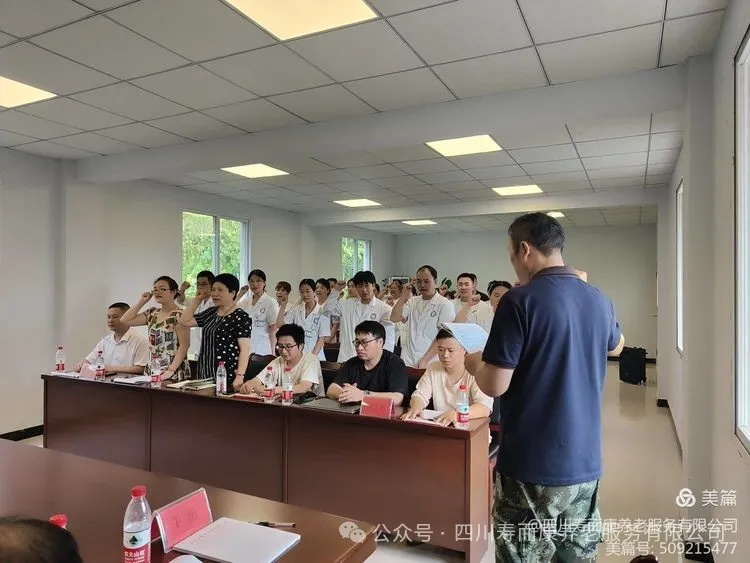 后面,壽而康曹野董事長(cháng)發(fā)表了重要講話(huà)。他首先對軍人出生的王院長(cháng)帶領(lǐng)全體員工激情洋溢地宣誓,表示感謝,同時(shí)對股東代表劉總和星瑞曹總所提出的具體建議和對未來(lái)的展望,表示贊同。接著(zhù)他強調了以下幾點(diǎn):一是祝賀壽而康公司、星瑞集團和海圣堂強強聯(lián)手,從今天開(kāi)始攜手并進(jìn),共同打造我們南充高質(zhì)量的醫養融合標桿,可喜可賀。二是感謝劉總等股東對海圣堂打下了雄厚的基礎,建立了良好的秩序和紀律,建立了團隊,在此基礎上,有利于我們進(jìn)行再優(yōu)化、再完善、再建設。同時(shí)感謝在座海圣堂全體員工的辛勤付出,團結一致,做好了各項工作。三是提出兩點(diǎn)希望,一是希望接收整改小組進(jìn)駐后,能得到在座的同志們大力配合,支持各項工作的推進(jìn);二是接收重點(diǎn)做好三方面工作,一方面是穩定工作,穩定就是要保證所有的員工、老人及老人親屬,不能因為接收整改而導致紊亂,必須保證海圣堂品牌,穩定壓倒一切。在磨合過(guò)程中,以前海圣堂的團隊文化、理念包括制度、薪酬待遇等,可能和壽而康有一些出入,但是我們始終是向好,是優(yōu)化,是磨合好,終實(shí)現大同,所以大家要安心、放心,至少薪酬、崗位暫時(shí)不會(huì )變,今后即使要改變,也是向更好的方向發(fā)展。二方面是安全工作,海圣堂過(guò)渡階段的安全尤為重要,必須提到高的高度,裝修階段更要高度重視并抓好安全,不能發(fā)生安全事故,特別是責任事故。第三方面是要突出高質(zhì)量發(fā)展,其核心就是要做好服務(wù)質(zhì)量的提升,要充分認識到,沒(méi)有好的基礎,沒(méi)有好的配套,沒(méi)有好的制度,那就談不上高質(zhì)量發(fā)展,所以首先要做到服務(wù)質(zhì)量的提升,在現有基礎上循序漸進(jìn)提升,希望大家緊跟步伐,大力支持,密切配合,立足本職做貢獻。他對即將到來(lái)的國慶節向大家表示祝賀,并強調重陽(yáng)節是我們養老行業(yè)的重大節日,必須高度重視,精心策劃,讓我們住養老人們過(guò)一個(gè)祥和、安康、快樂(lè )的節日。
